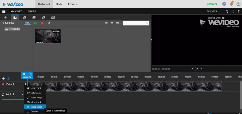 Чтобы отключить звук в вашем видео, выберите в меню видеотрека (на картинке) пункт Mute track. Остается только добавить запись караоке на временную шкалу.