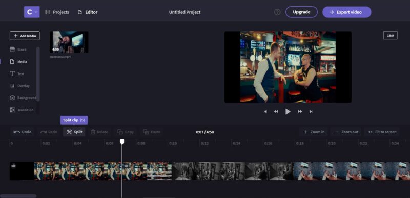 Процесс монтажа будет понятен даже неопытному пользователю. Выбрав нужные файлы, вы перетягиваете их на временную шкалу, где можете отредактировать ролики, вставить фото, добавить простенькие (на бесплатном аккаунте) эффекты, подогнать видеоряд под ваше исполнение.